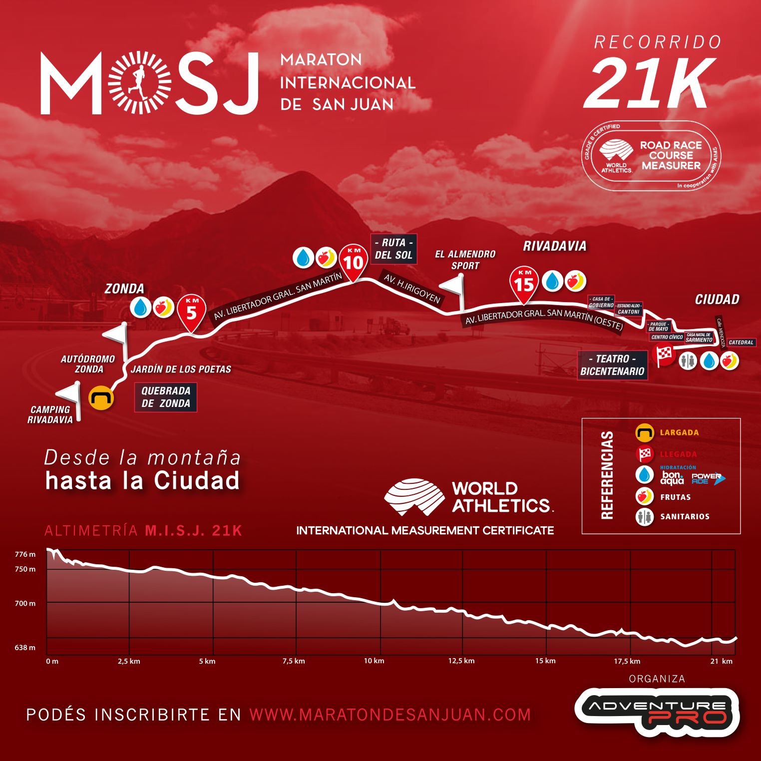 * Las distancias de 42K y 21K cuentan con certificación de World Athletics y C.A.D.A., garantizando medición precisa, reconocimiento internacional y seguridad para todos los participantes.